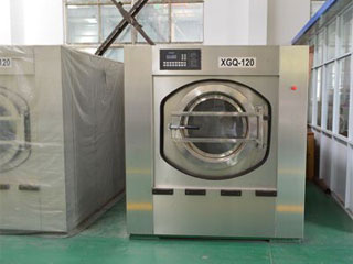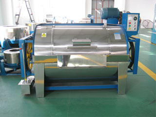 該工業(yè)洗衣機(jī)采用臥式滾筒型,內(nèi)外筒采用不銹鋼板精制而成,平整光亮耐腐蝕,對(duì)織物的磨損小且無(wú)損傷,可以用于濾布清洗。